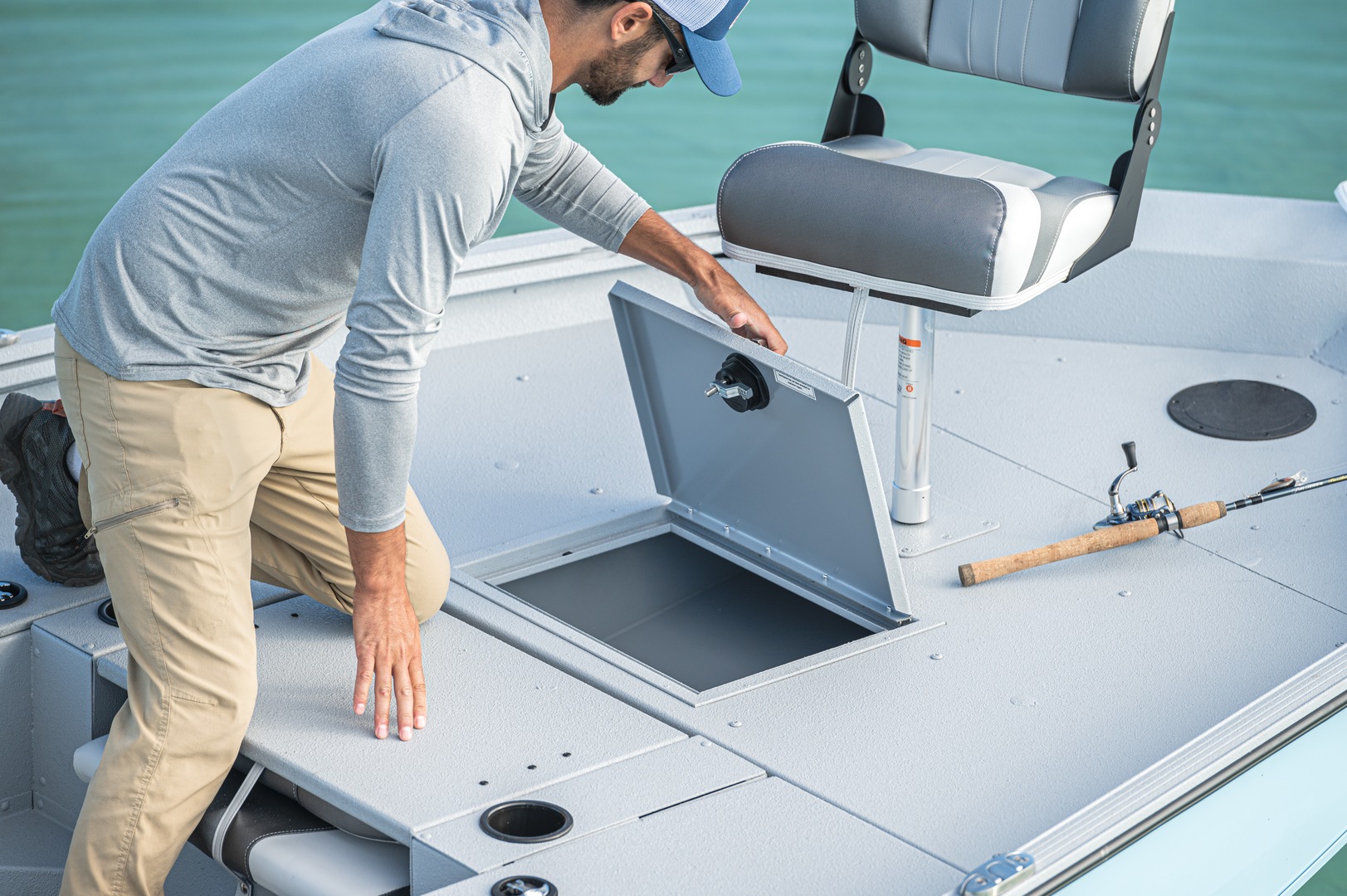 If an angler likes “tempting the tides” and fishing skinny marshes for redfish but wants the ability to get to deeper water as the tide goes out, the Bay Boat by Polar Kraft is a great insurance policy. The ability to navigate tight spaces when needed but still handle the intracoastal waterways when the wrong wind blows make this welded boat great for salty and brackish waters. If your baitfish or gamefish get messy, a Tundra Coating is standard, but a SeaDek upgrade is available.